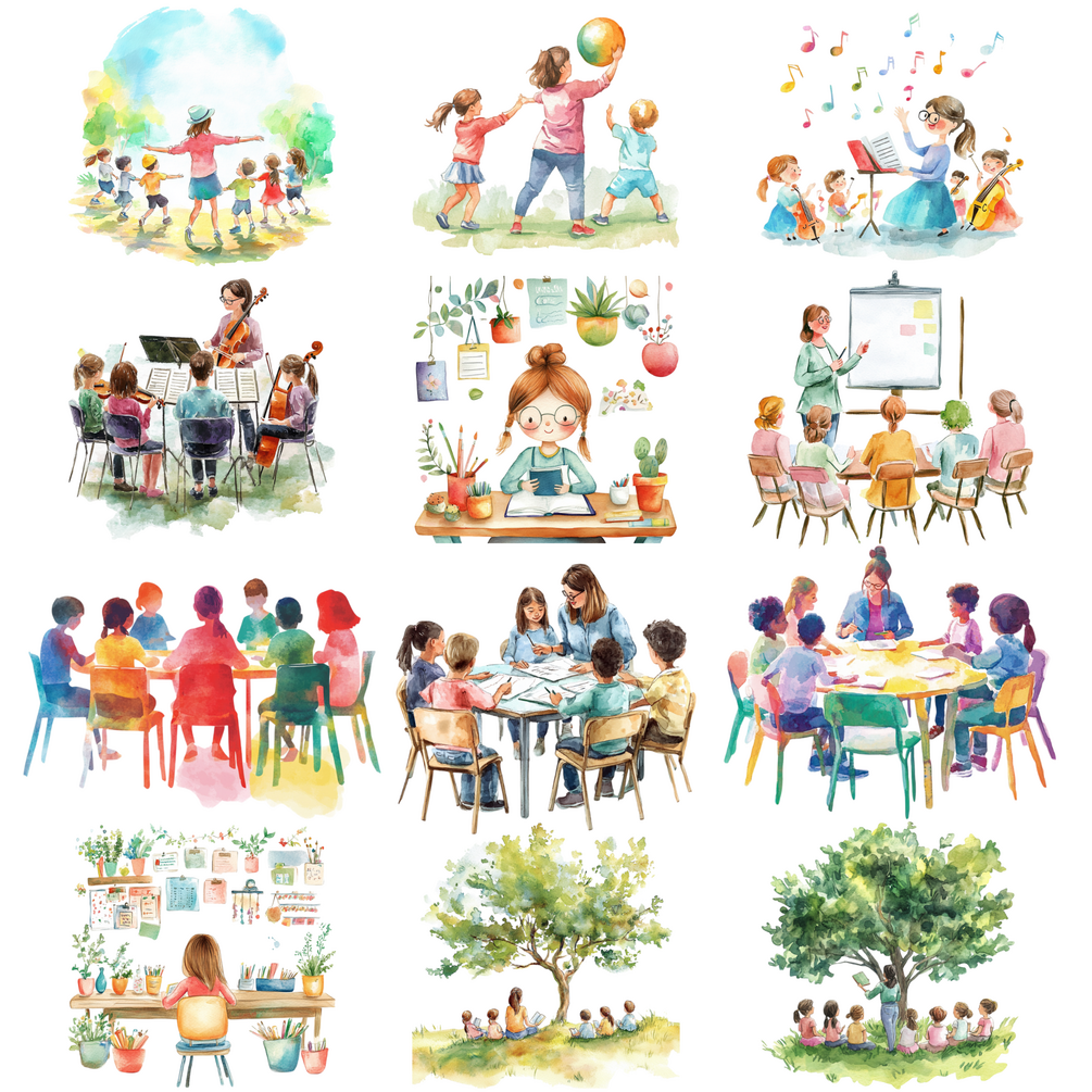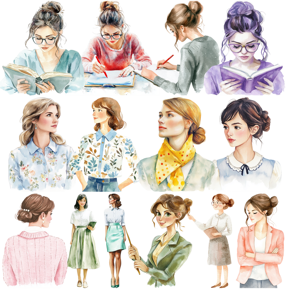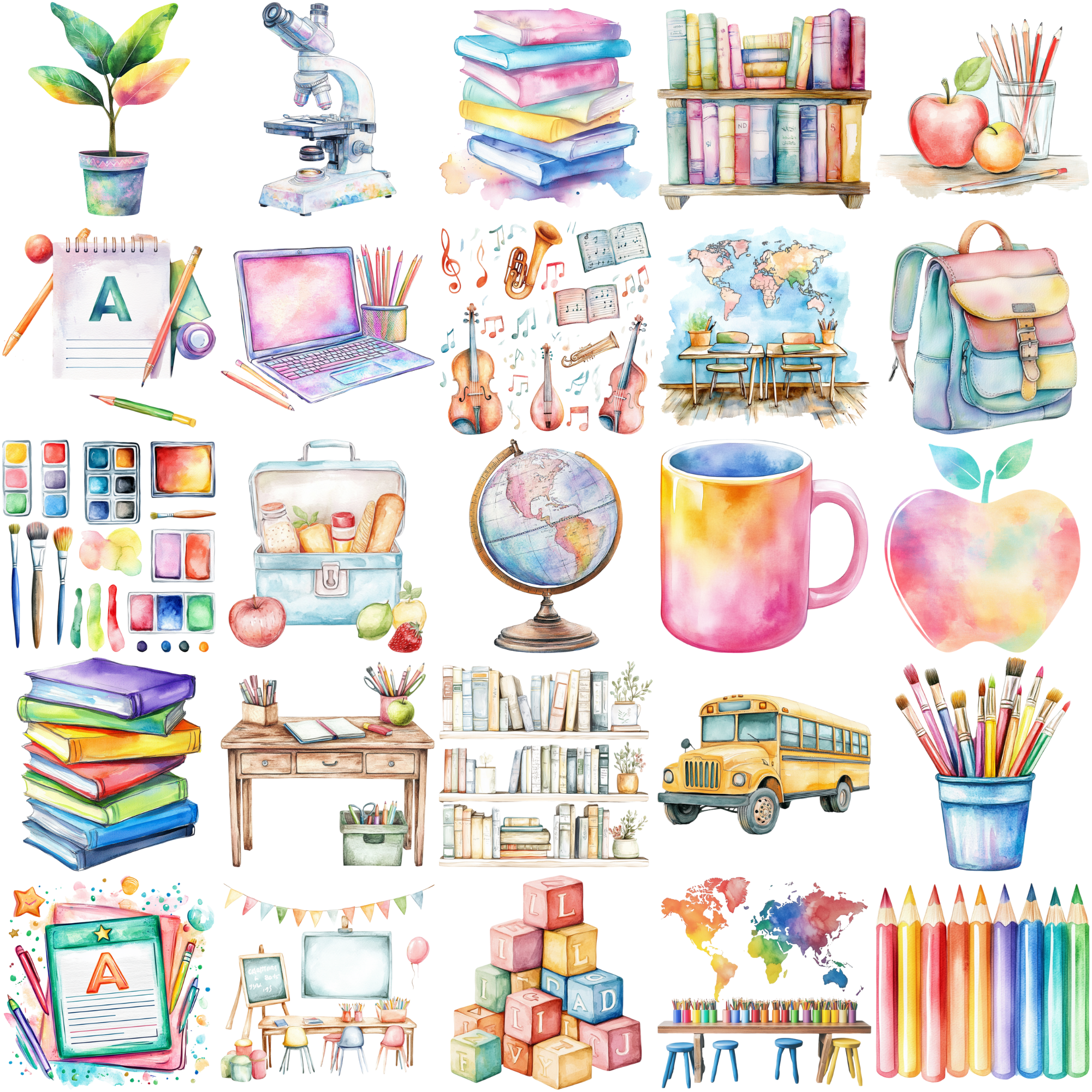 TEACHER - Our digital watercolor clipart bundle, featuring 100 unique designs, is ideal for enhancing various creative endeavors, including scrapbooking, greeting cards, digital artwork, and website design.