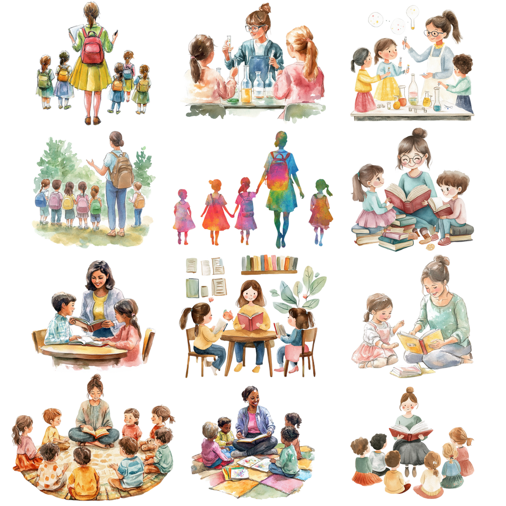 Teacher - 100 Cliparts Bundle - 300DPI - Commercial Use - Teacher Watercolor Clipart, Digital Stickers, Watercolor PNG designs